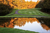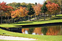 池に映り込む秋色に目を奪われ、早来の丘陵に自然と横たわる各ホールは、北海道随一の景色に感動する。