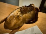 待っている間にイカ軟骨の串焼きを隣の常連さんにサービス
