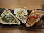 焼きたての3種の牡蠣はそれぞれの味に納得