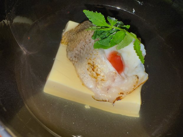 お椀 鯒葛打ち 玉子豆富 つる菜 梅肉 木の芽