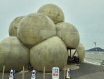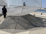 港の反対側に透明の建築物が一際際立っている