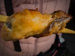 (串焼きで3個の牡蠣が甘辛味で焼かれた一品)