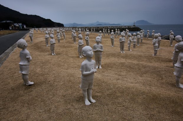海岸にある世界の国々の子供達の平和の祈り197体